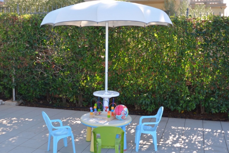 Neben dem großen Swimmingpool gibt es auch ein kleines Kinderbecken (30 cm Tiefe) um gemeinsam zu spielen.